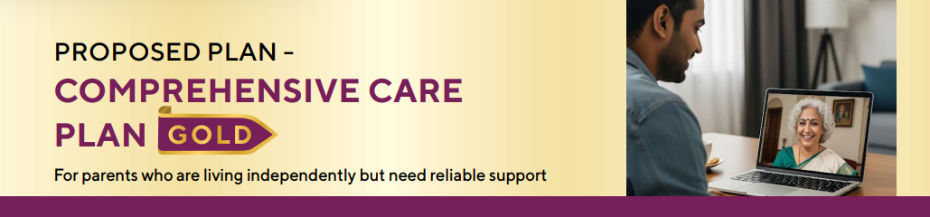 The Samarth brochure presents a clear categorization of care plans—such as Silver, Gold, and Platinum—tailored to varying levels of eldercare needs. The Comprehensive Gold Plan is positioned as the most robust and customizable option, offering extensive coverage without overwhelming the buyer. A side-by-side comparison table highlights key features across plans, helping families make informed choices while subtly introducing upgrade paths. This structured presentation enhances clarity, builds trust, and supports confident decision-making.